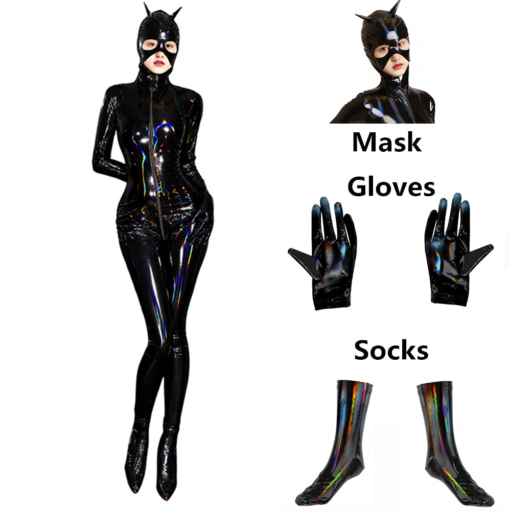 - Product Name: Adult Cat Girl Cosplay Costume Women Sexy Shiny Leather PU Zipper Open Crotch Bodysuit XX69039