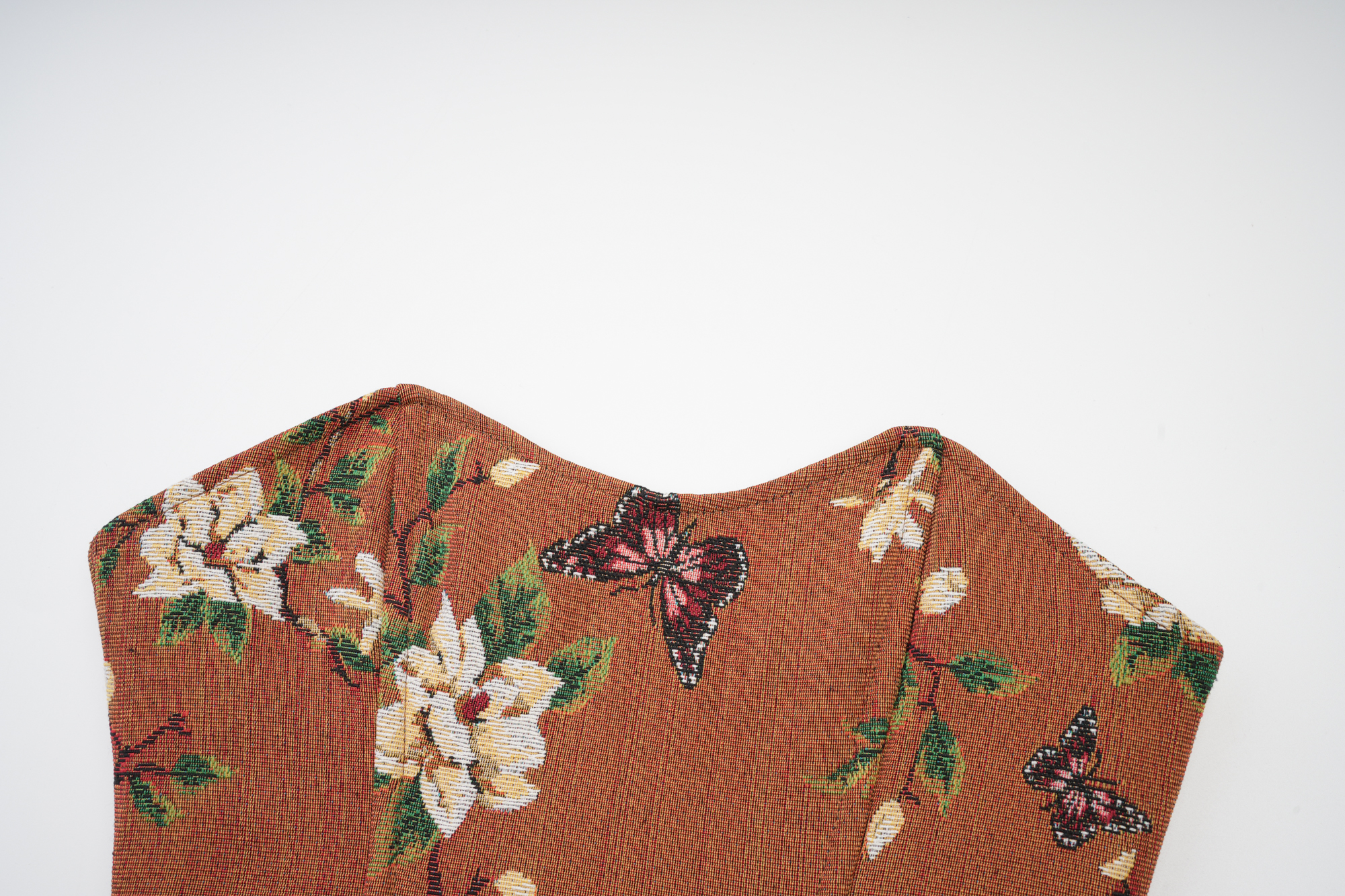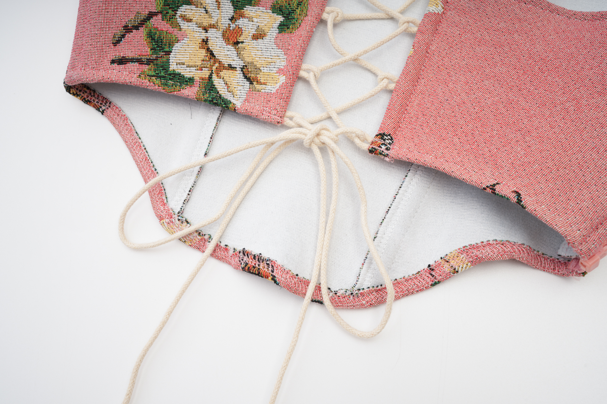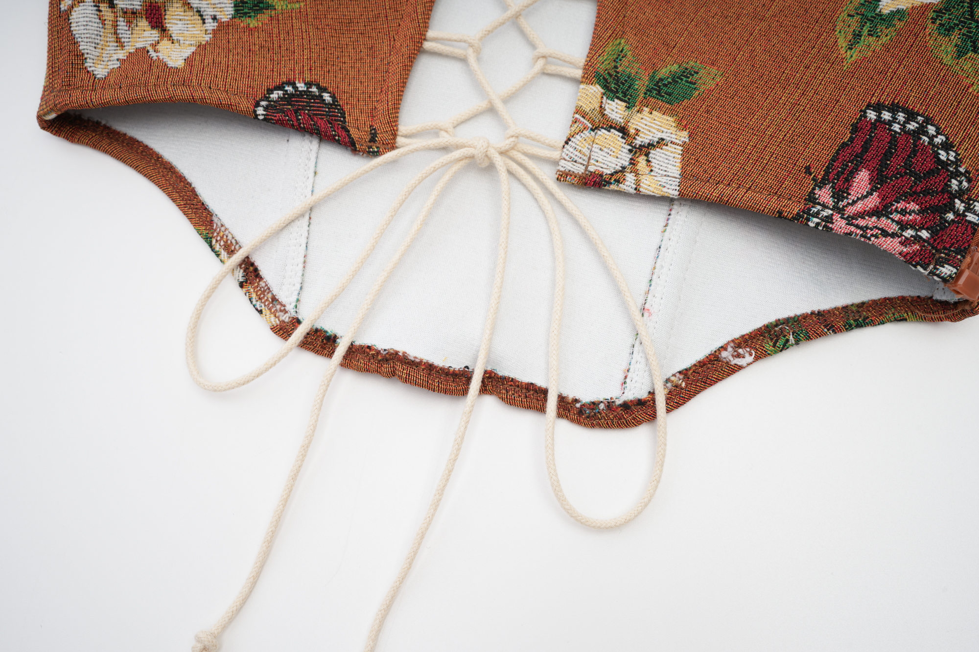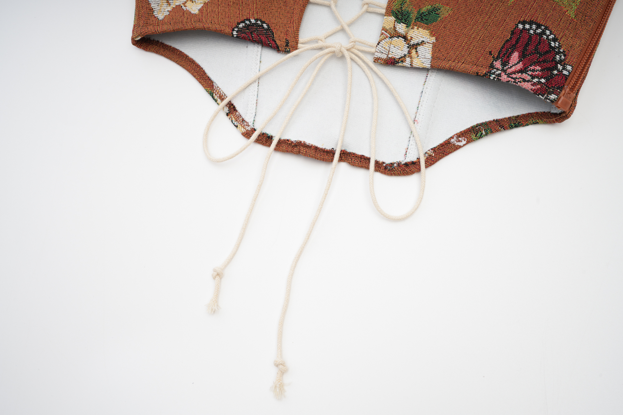 - Product Name: Belly Oil Painting Wind Corset Top Yarn Dyed Jacquard Fish Bone Waist Corset 22048