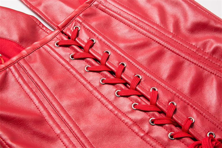 best selling adult red leather corset m1982a including g-string,single breasted front and lace up back