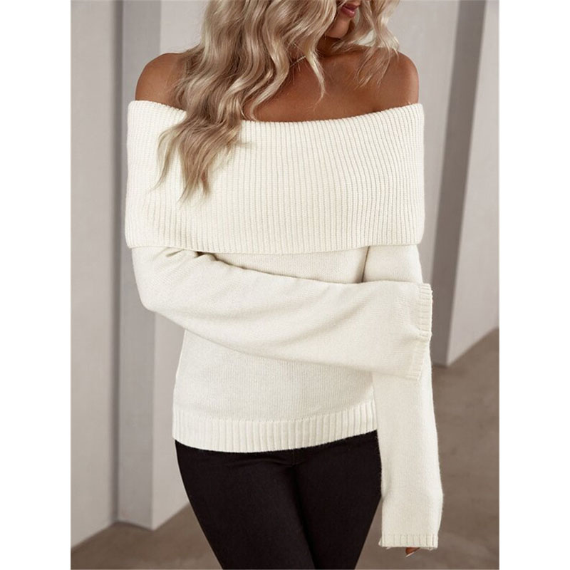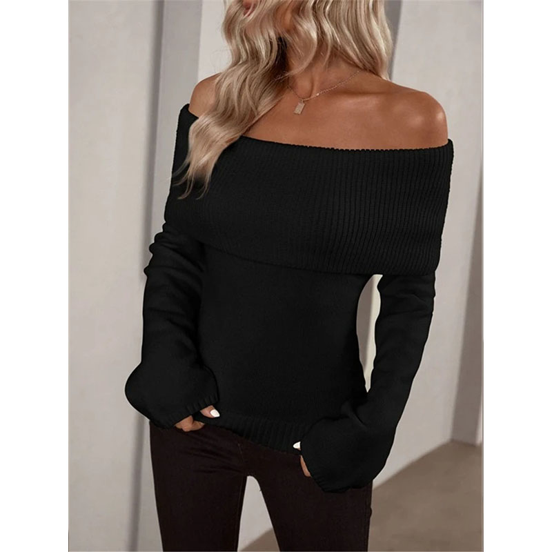 Home>Fashion Dress>Women's Sweaters>Boat Neck Slim-fit Fashion Sexy Knitted Sweater Long-Sleeved Women's Sweaters ZY1016