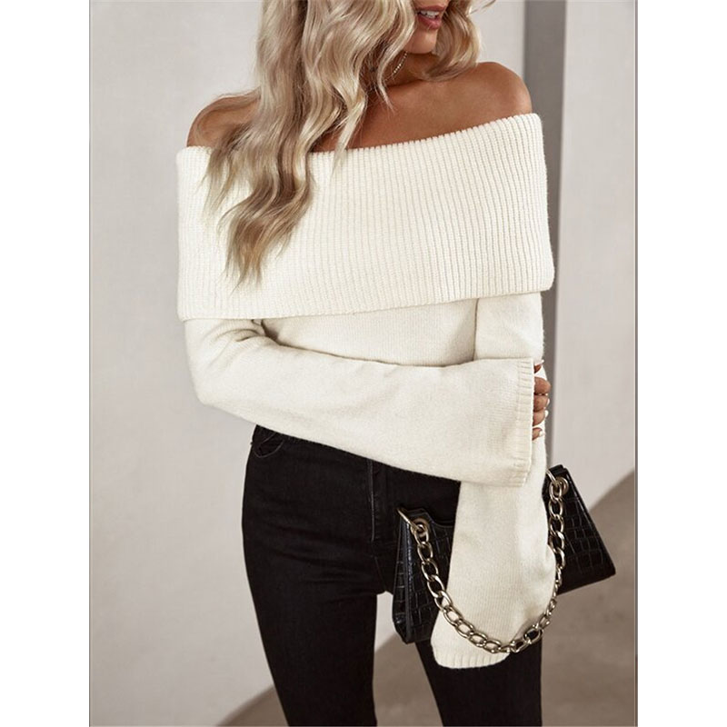- Product Name: Boat Neck Slim-fit Fashion Sexy Knitted Sweater Long-Sleeved Women's Sweaters ZY1016