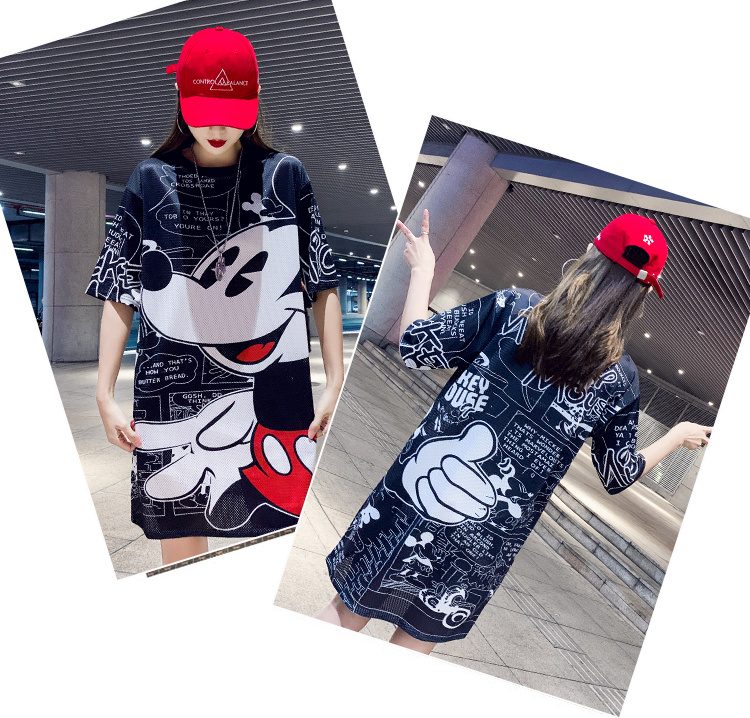 Home>Two Piece Set & Sport Wear>T-shirt & Blouse>Cartoon Design Mickey Mouse Women T shirt Dress M8371