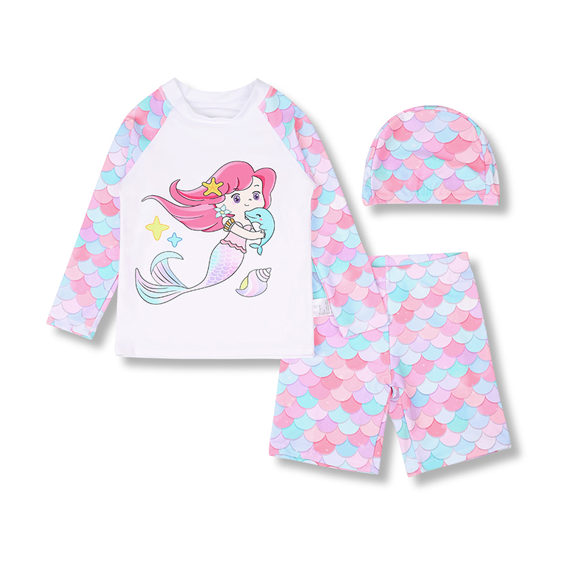 - Product Name: Children's Swimsuit Mermaid Separate Set Long Sleeve Fish Scale Shorts Girls Swimsuit KF207