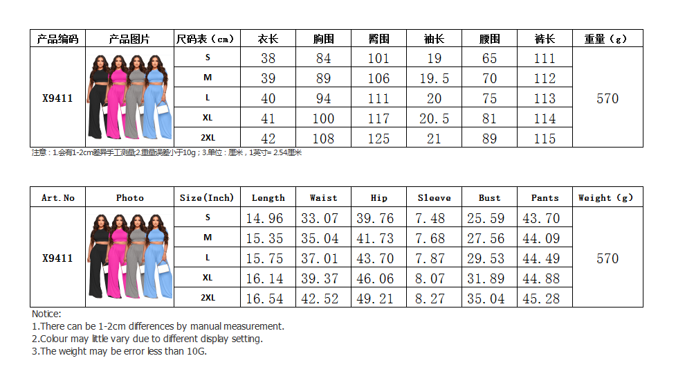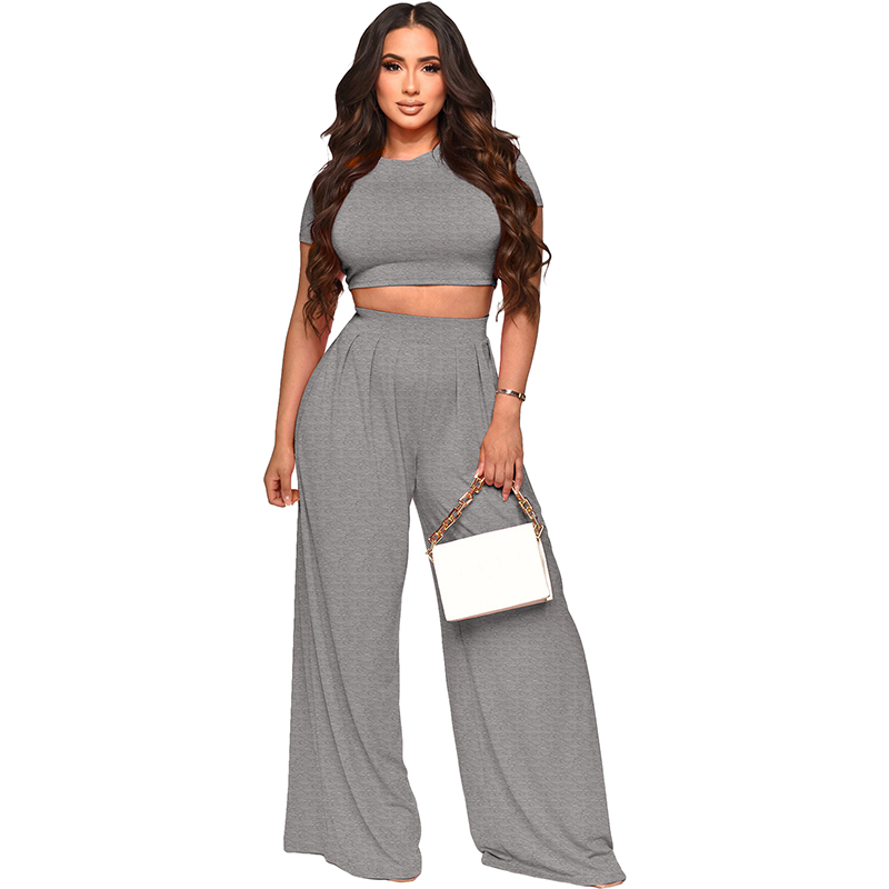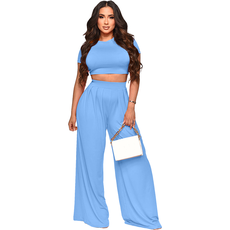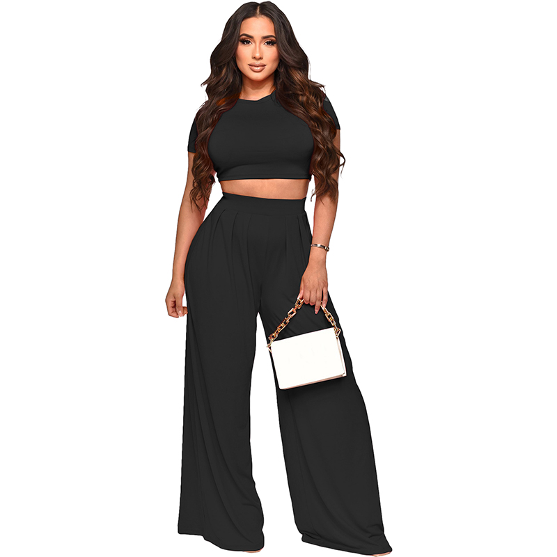 - Product Name: Fashion Crop Solid Color Wide Leg Pants Two Sets 9411