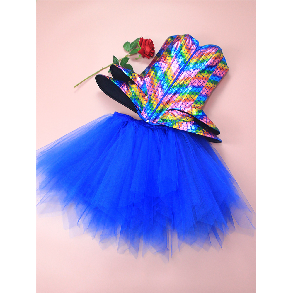 Fish Phosphorus Printed Corset Dance Performance Corset Puffy Skirt Stage Blue Corset 2406