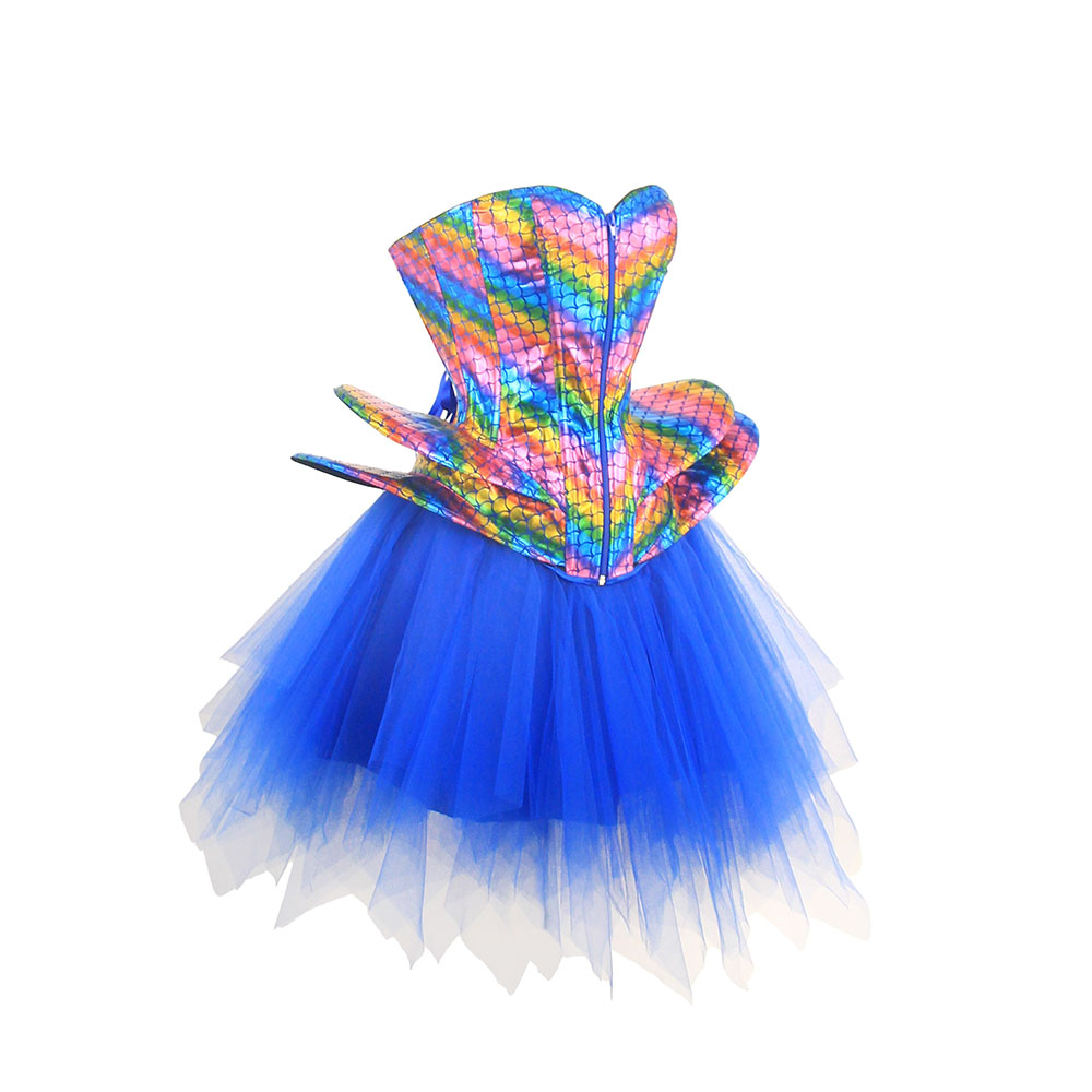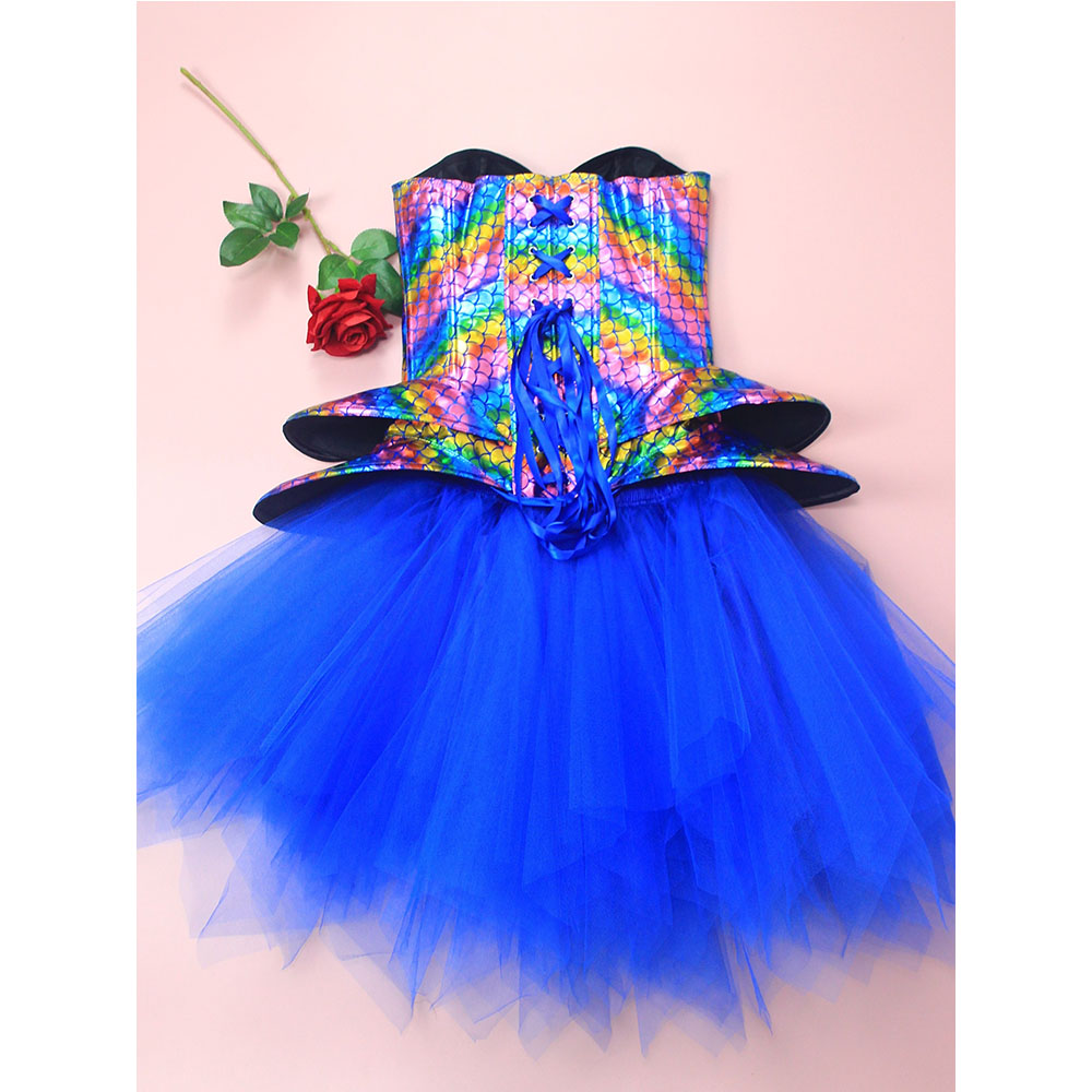 - Product Name: Fish Phosphorus Printed Corset Dance Performance Corset Puffy Skirt Stage Blue Corset 2406