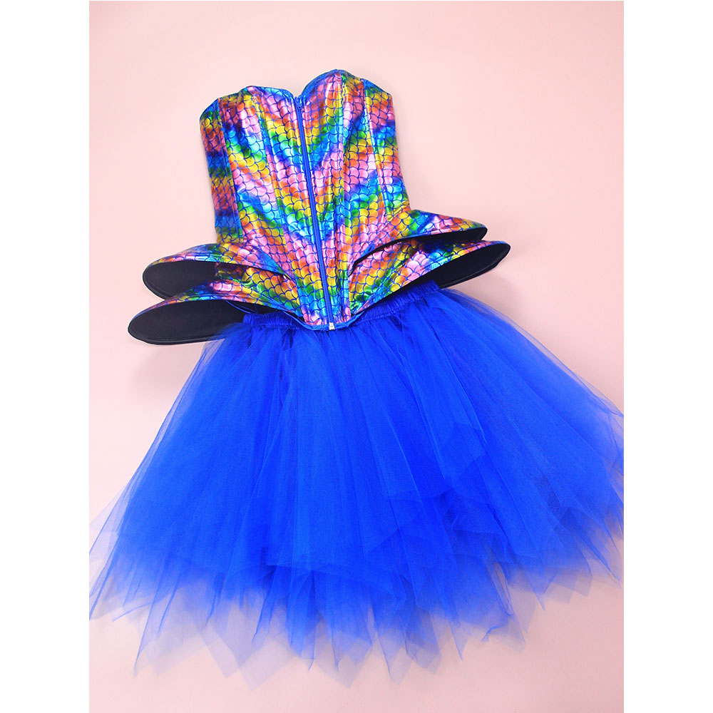 Fish Phosphorus Printed Corset Dance Performance Corset Puffy Skirt Stage Blue Corset 2406Item NO.: 2406