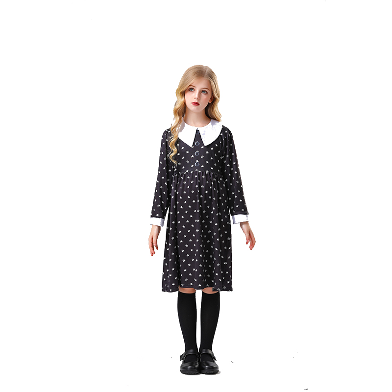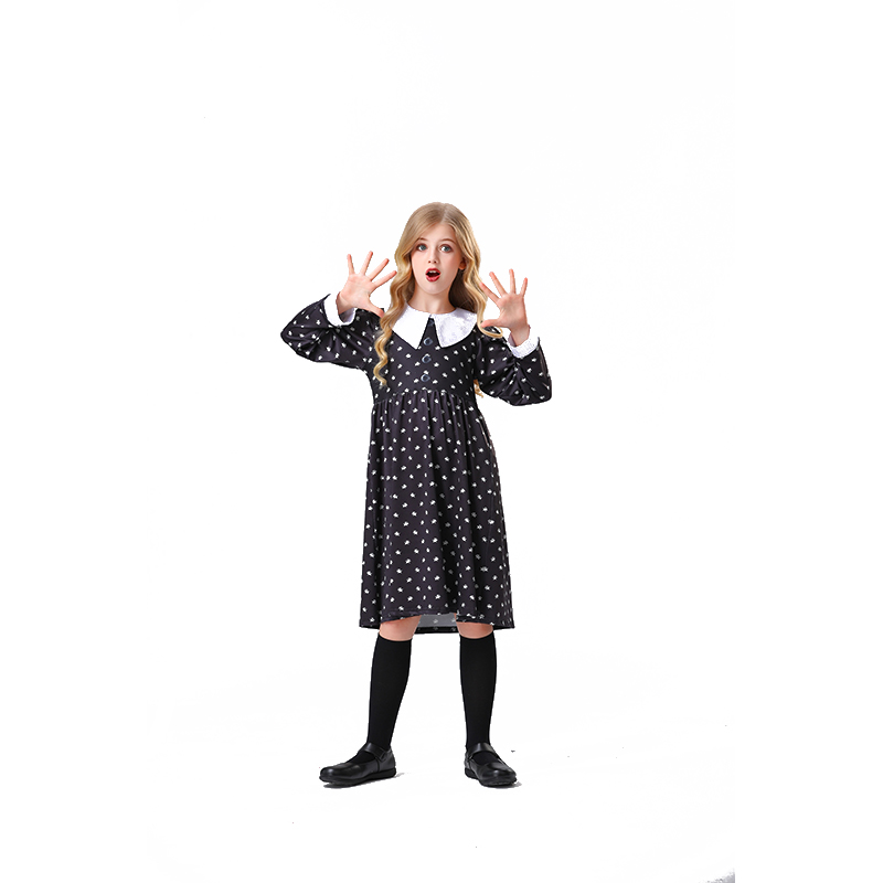 Girl Addams Family Costume Wednesday Addams Black Dress Cosplay Costume YM5820
