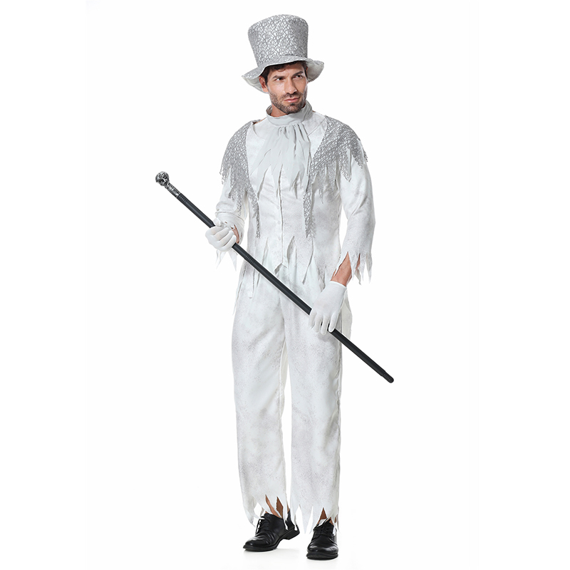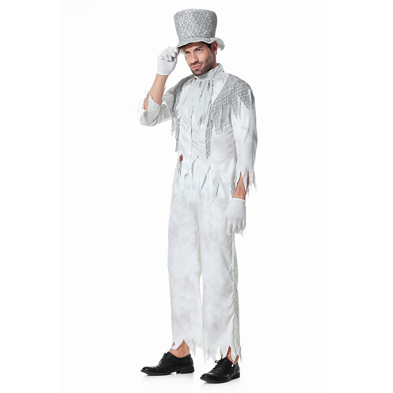 Halloween White Gghost Corpse Vampire Men Cosplay Demon Bar Party Costume XY82343