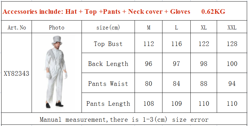 - Product Name: Halloween White Gghost Corpse Vampire Men Cosplay Demon Bar Party Costume XY82343