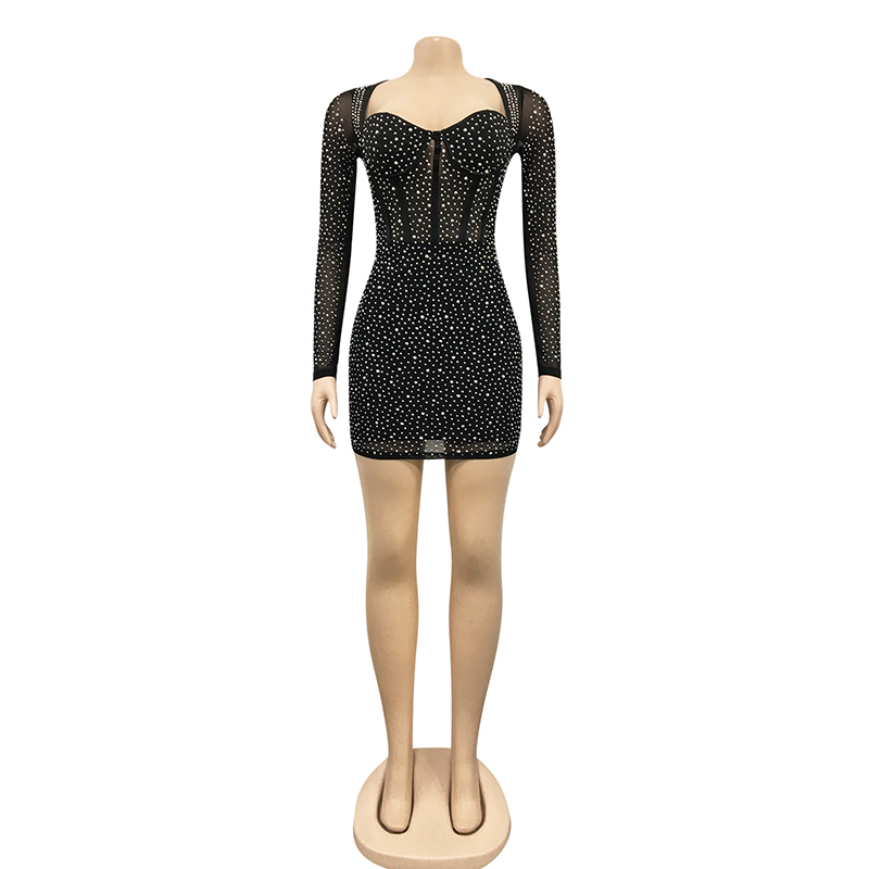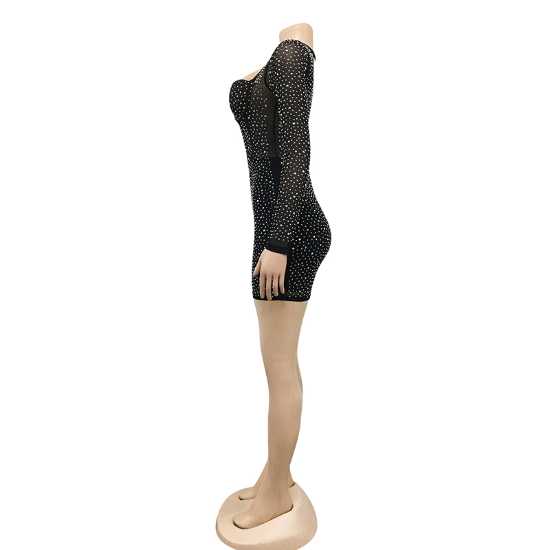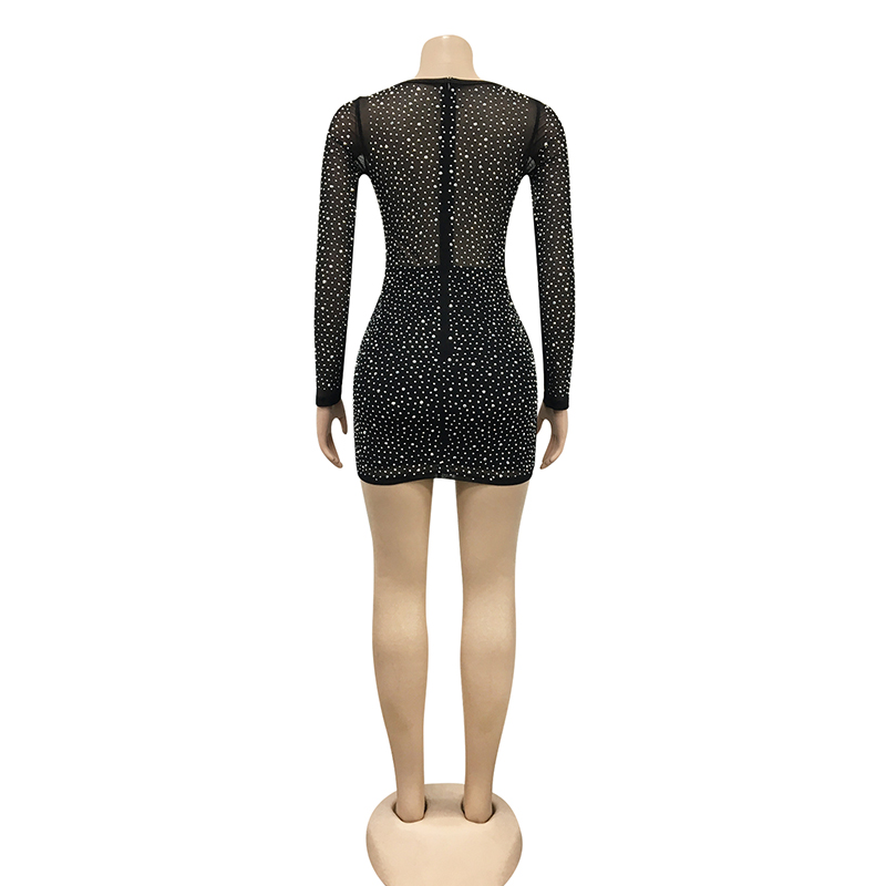 - Product Name: Hot Drilling Perspective Elegant Sexy Long Sleeve Dresses Women X3851