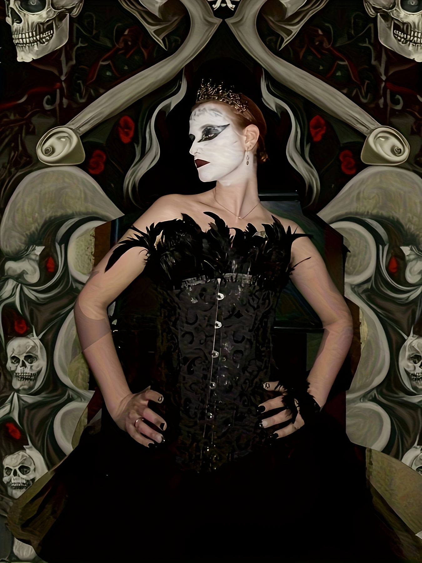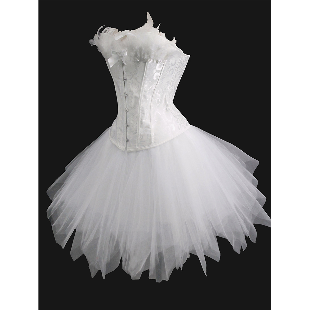 Home>Corsets & Bustiers>Corset with Skirt>Jacquard Tight Fitting Corset Slimming Swan Costume Sexy Black White Angel Busier Sets 2419