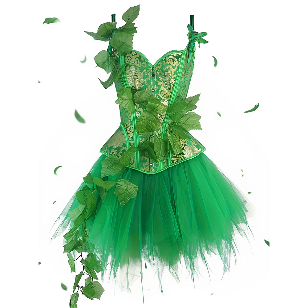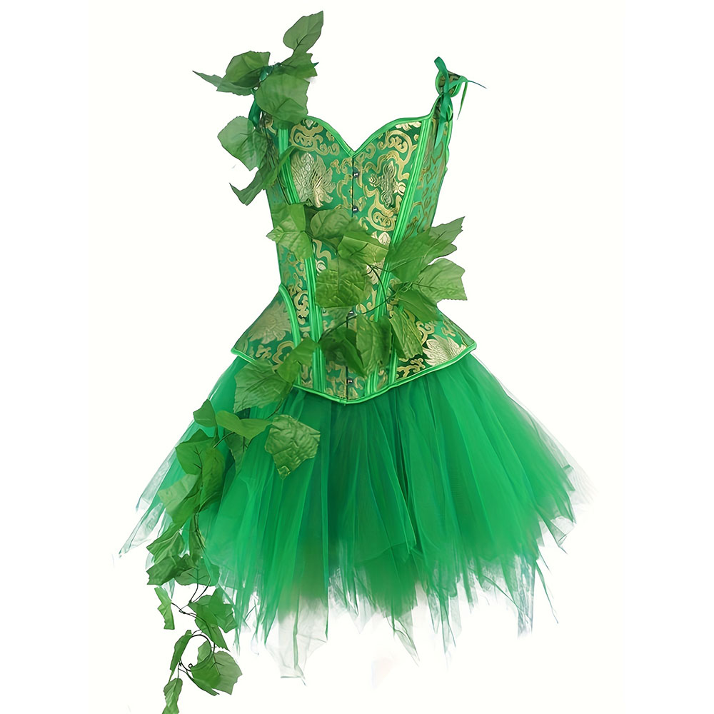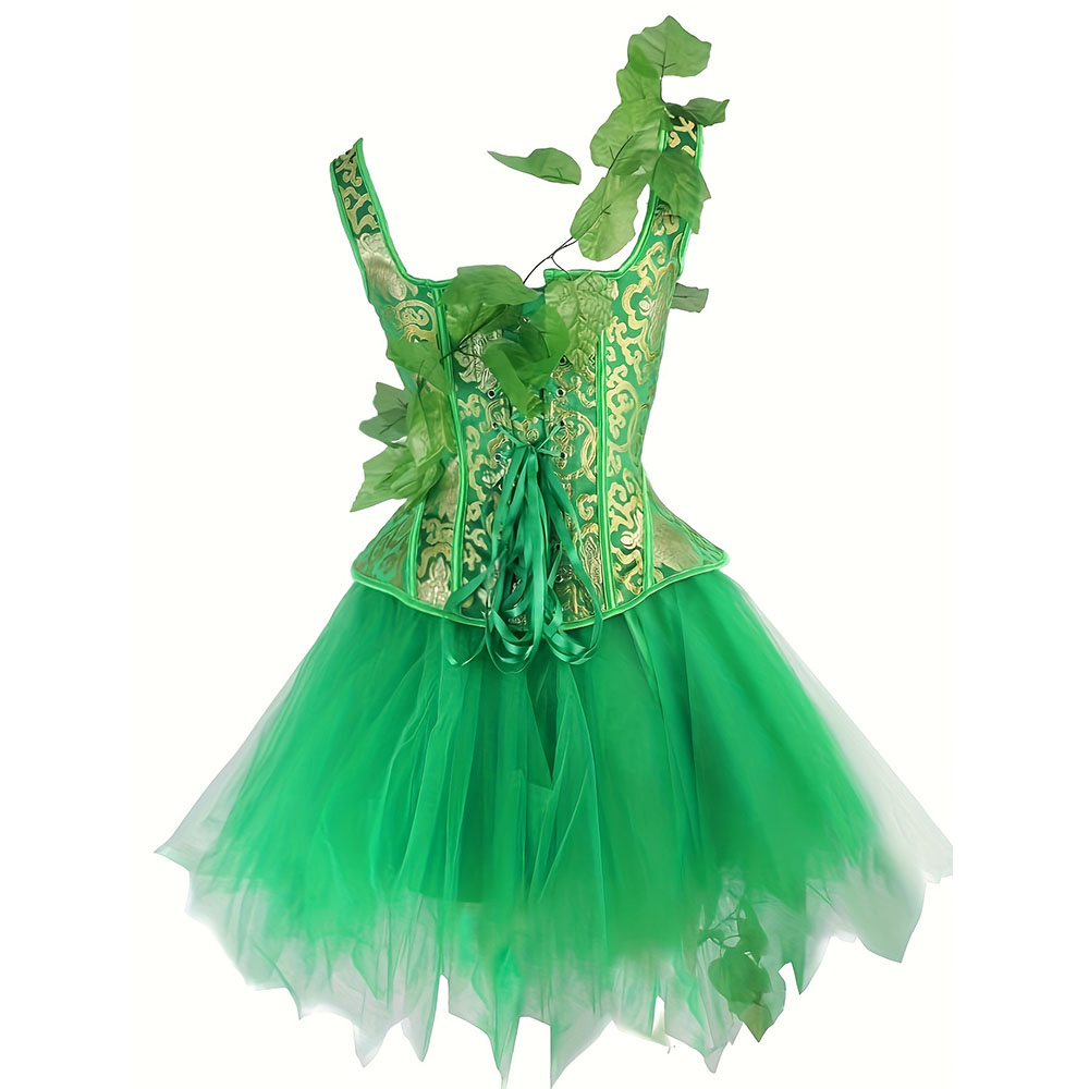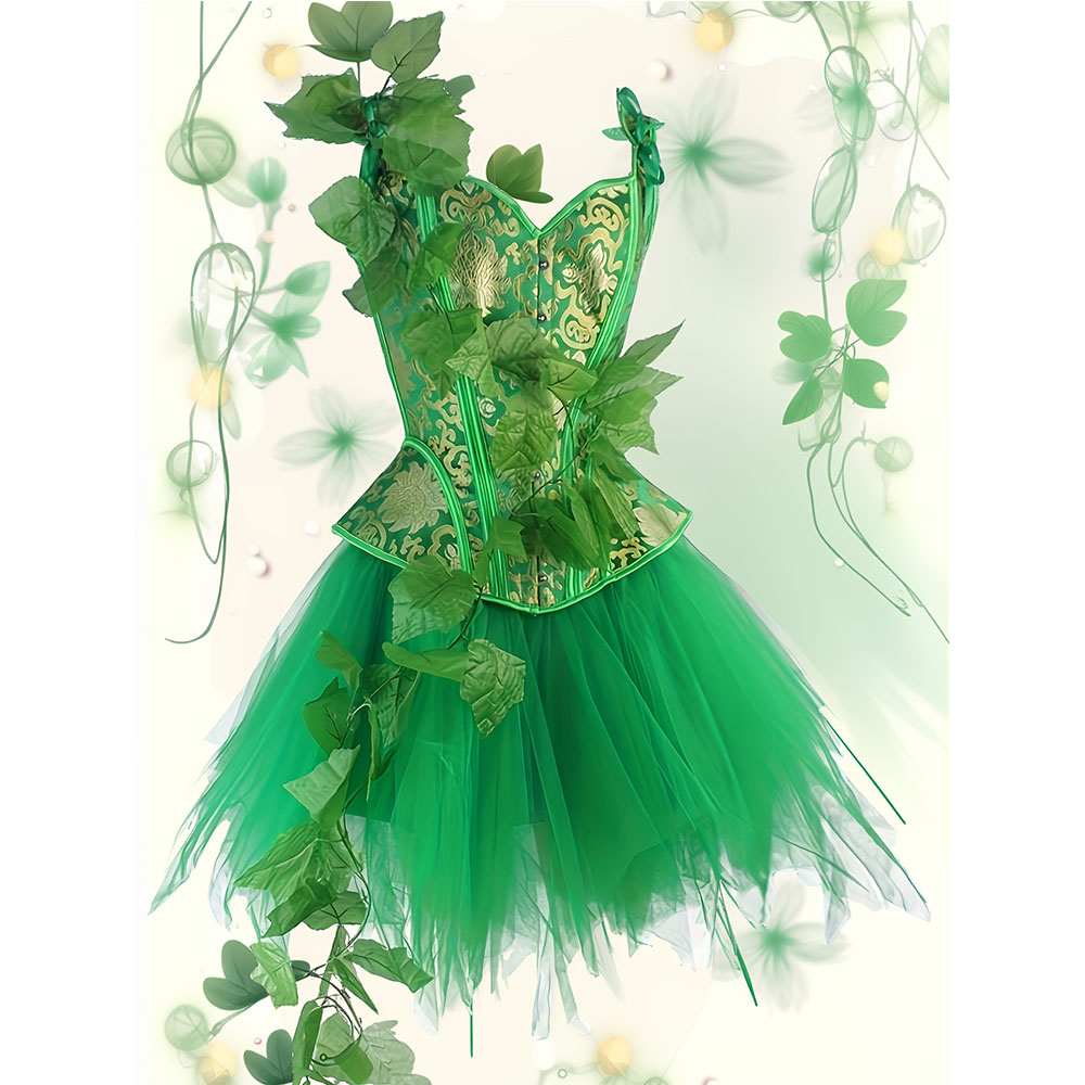 Home>Corsets & Bustiers>Corset with Skirt>Sexy Green Jacquard Corset and TUTU Chiffon Dress Halloween and Easter Green Elf Corset Suit 2382