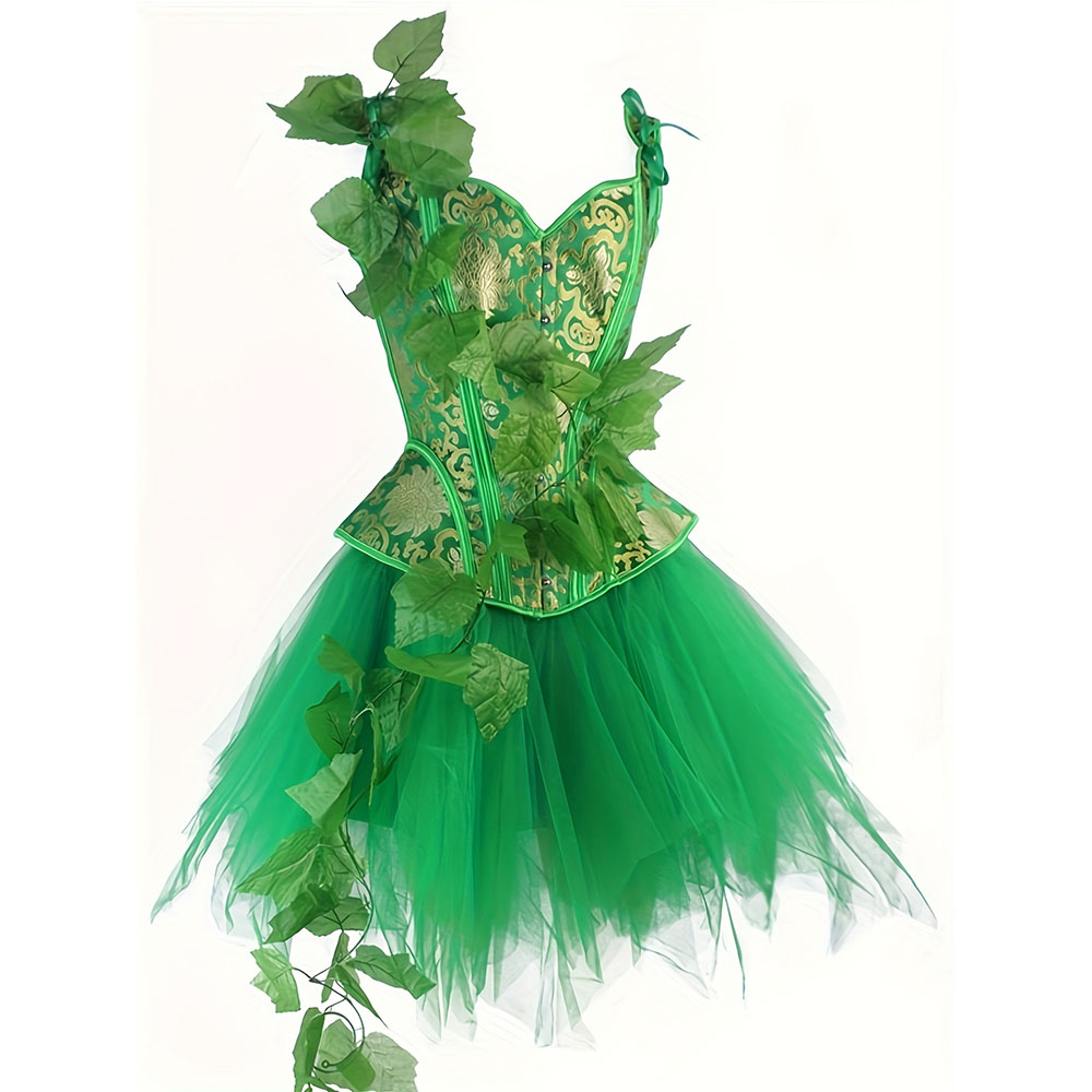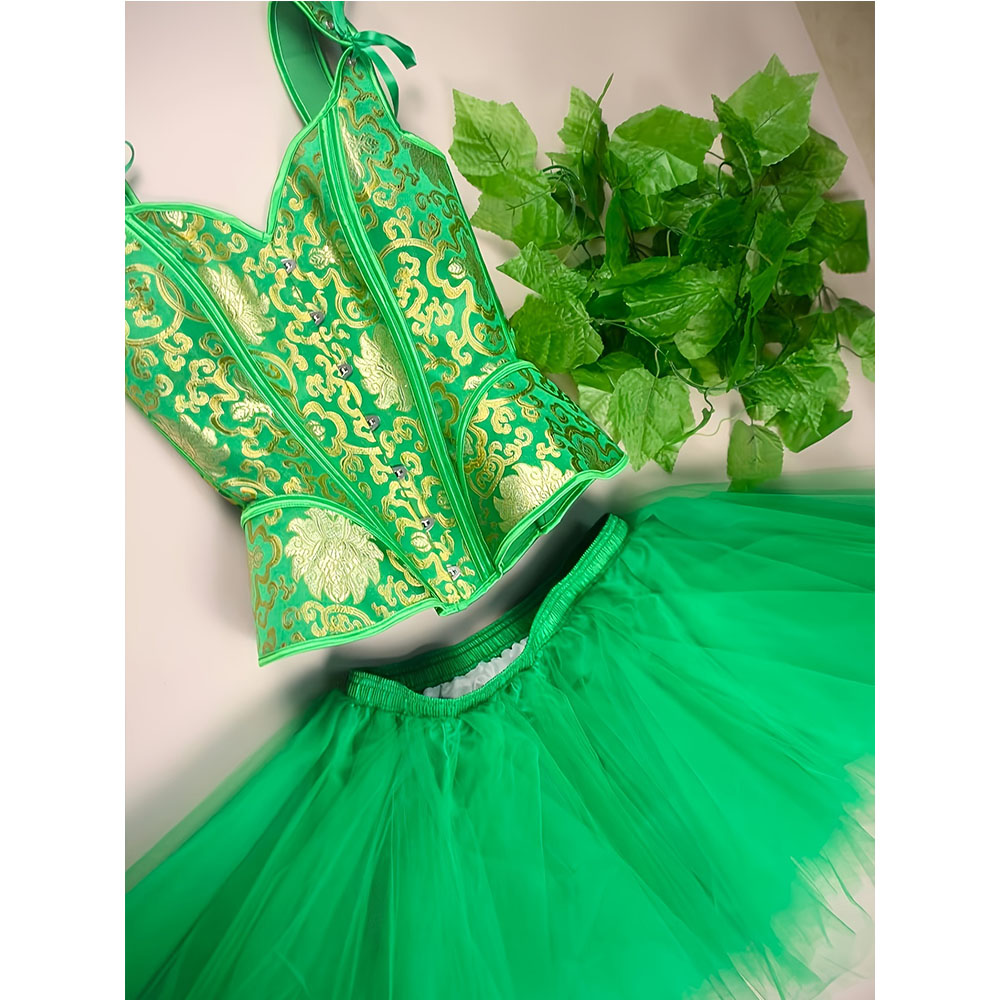 Sexy Green Jacquard Corset and TUTU Chiffon Dress Halloween and Easter Green Elf Corset Suit 2382