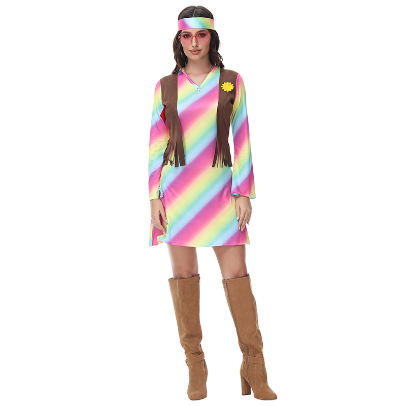 Sexy Halloween Gradient Striped Skirt Long Sleeve Cosplay Indian Dress Costume MS1781Item NO.: MS1781