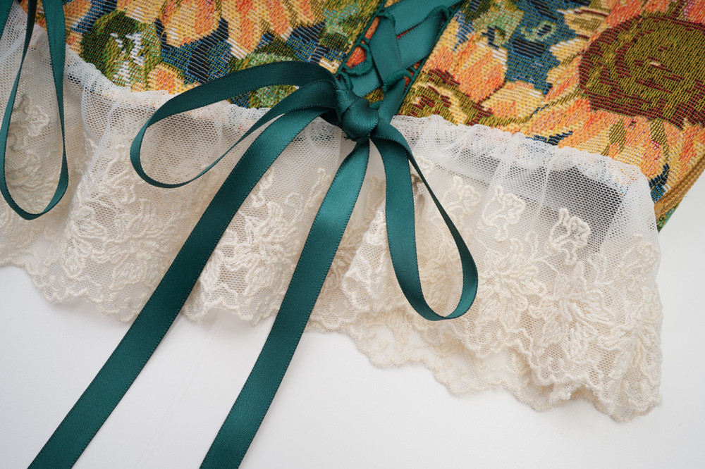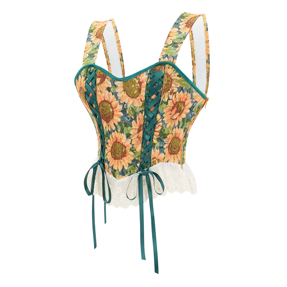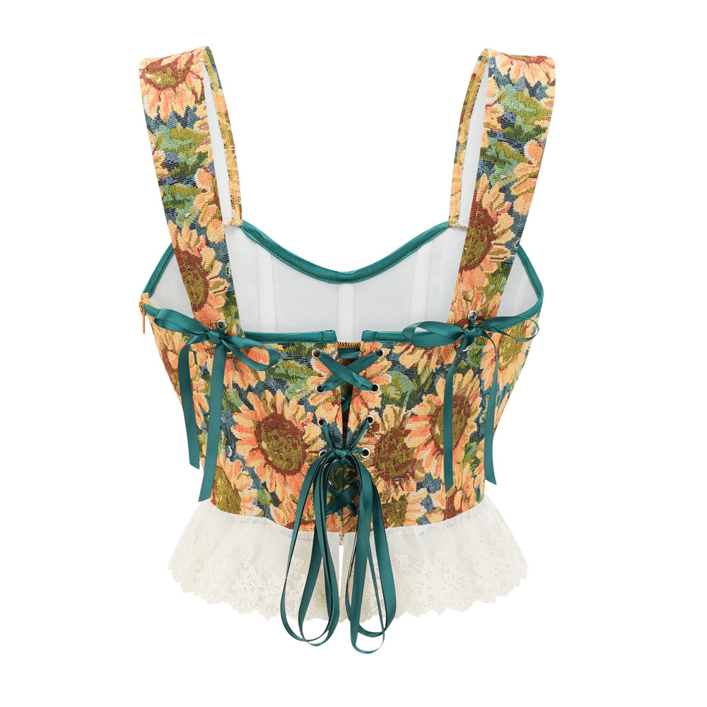 - Product Name: Sexy Lace Trim Sunflower Embroidery Straps Corset Cami Cropped Top M22061
