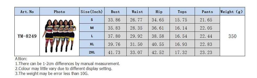 - Product Name: Sexy Letter Print Crop Top Casual Sporting 2 Piece Suit m8249