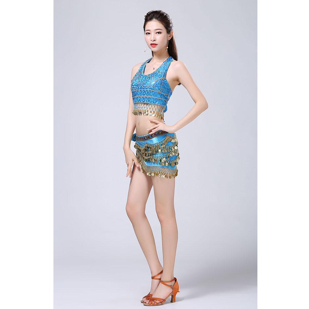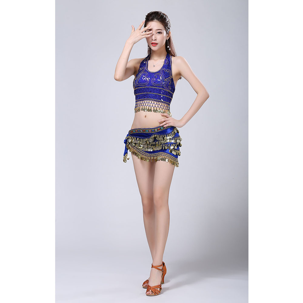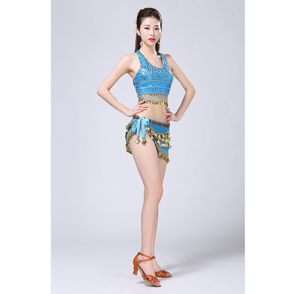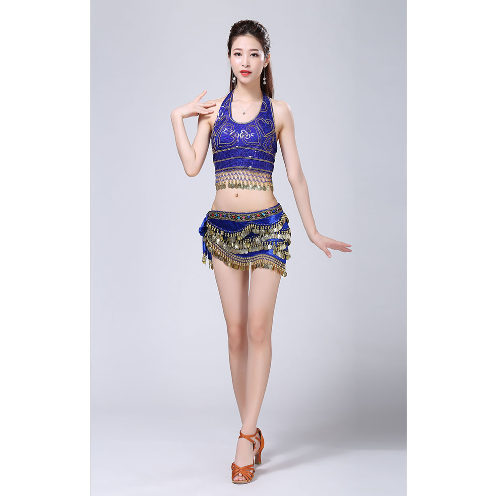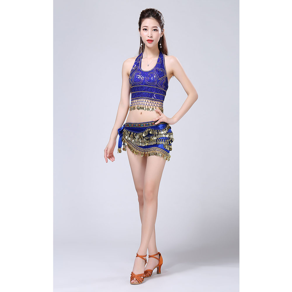 - Product Name: Stage Tie-up Halter Top and Skirt Belly Dance Rhinestone Sequins Sexy Tow Piece Costume D1815