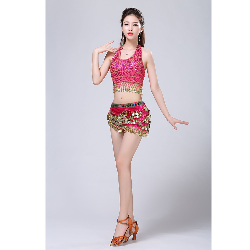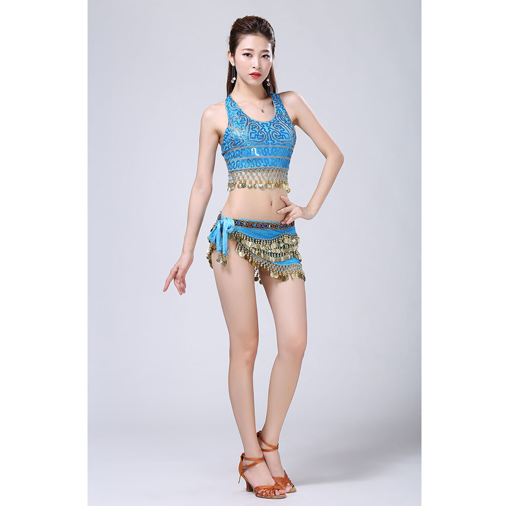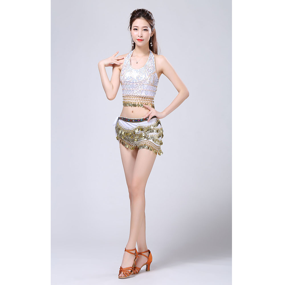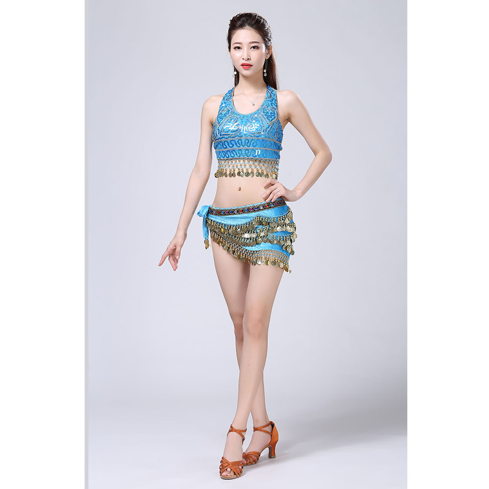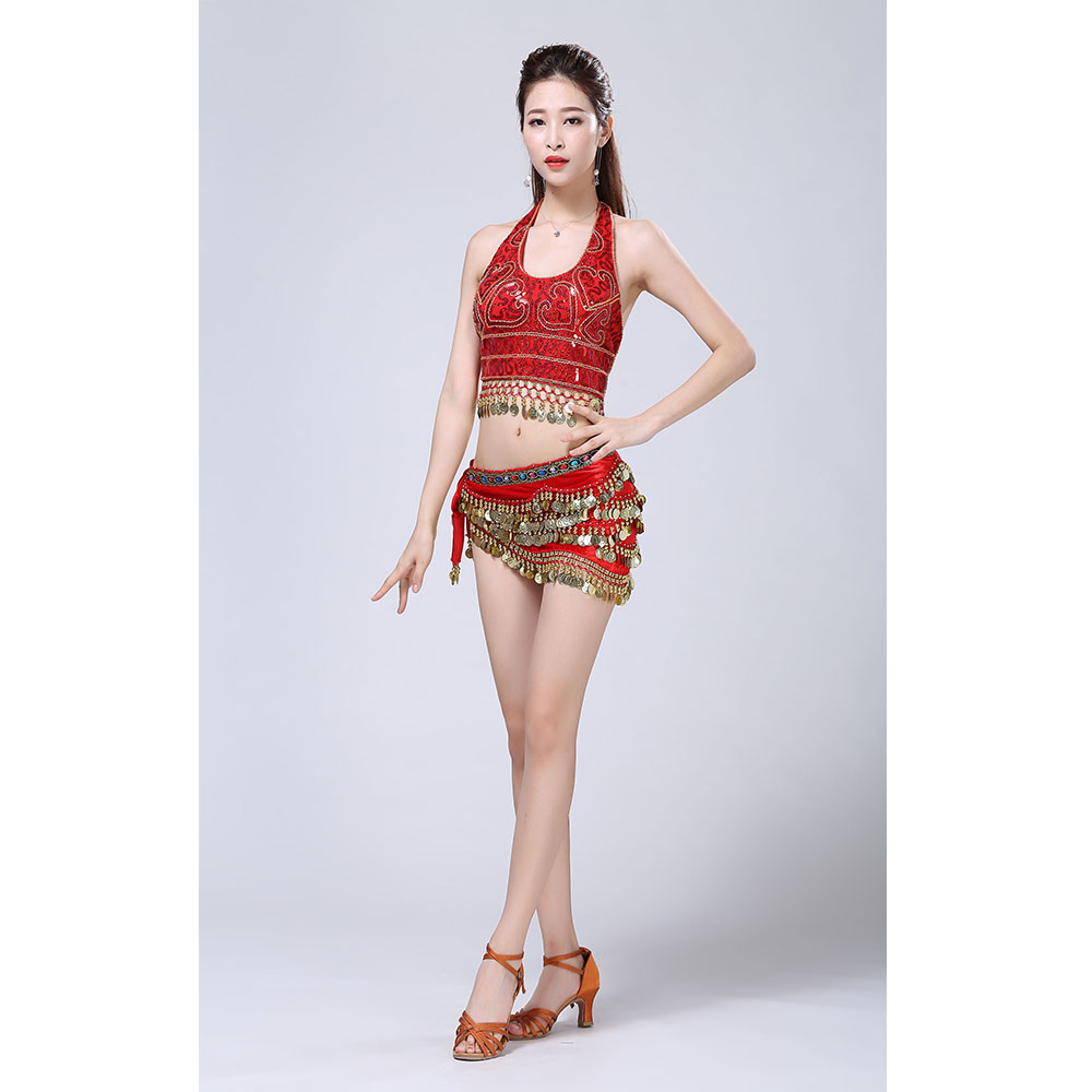 - Product Name: Stage Tie-up Halter Top and Skirt Belly Dance Rhinestone Sequins Sexy Tow Piece Costume D1815