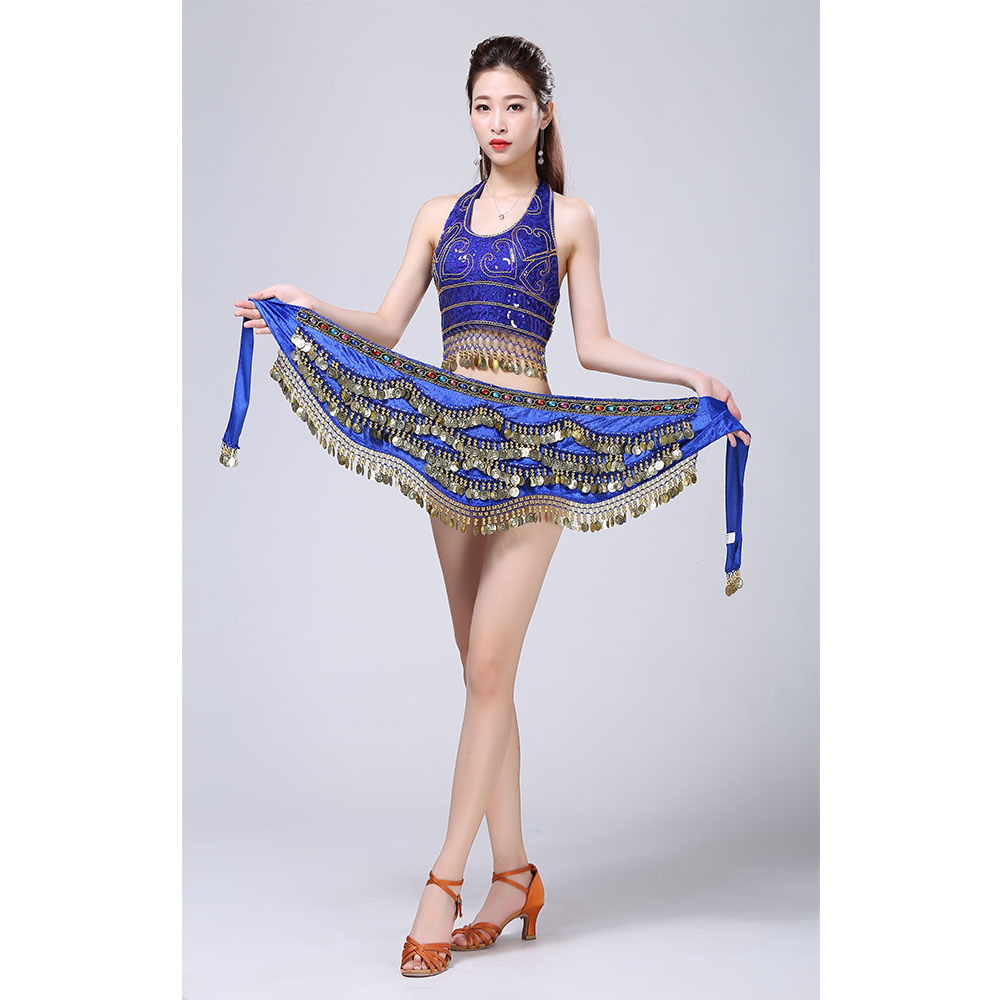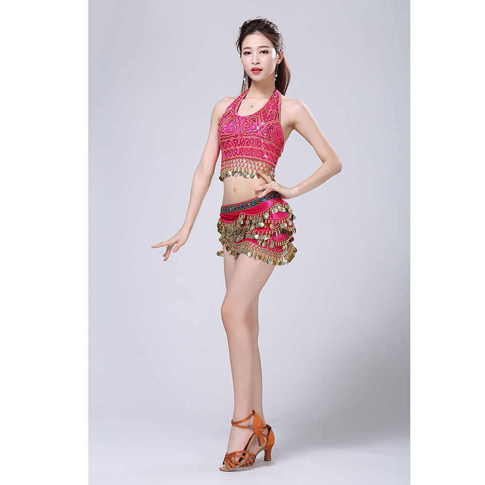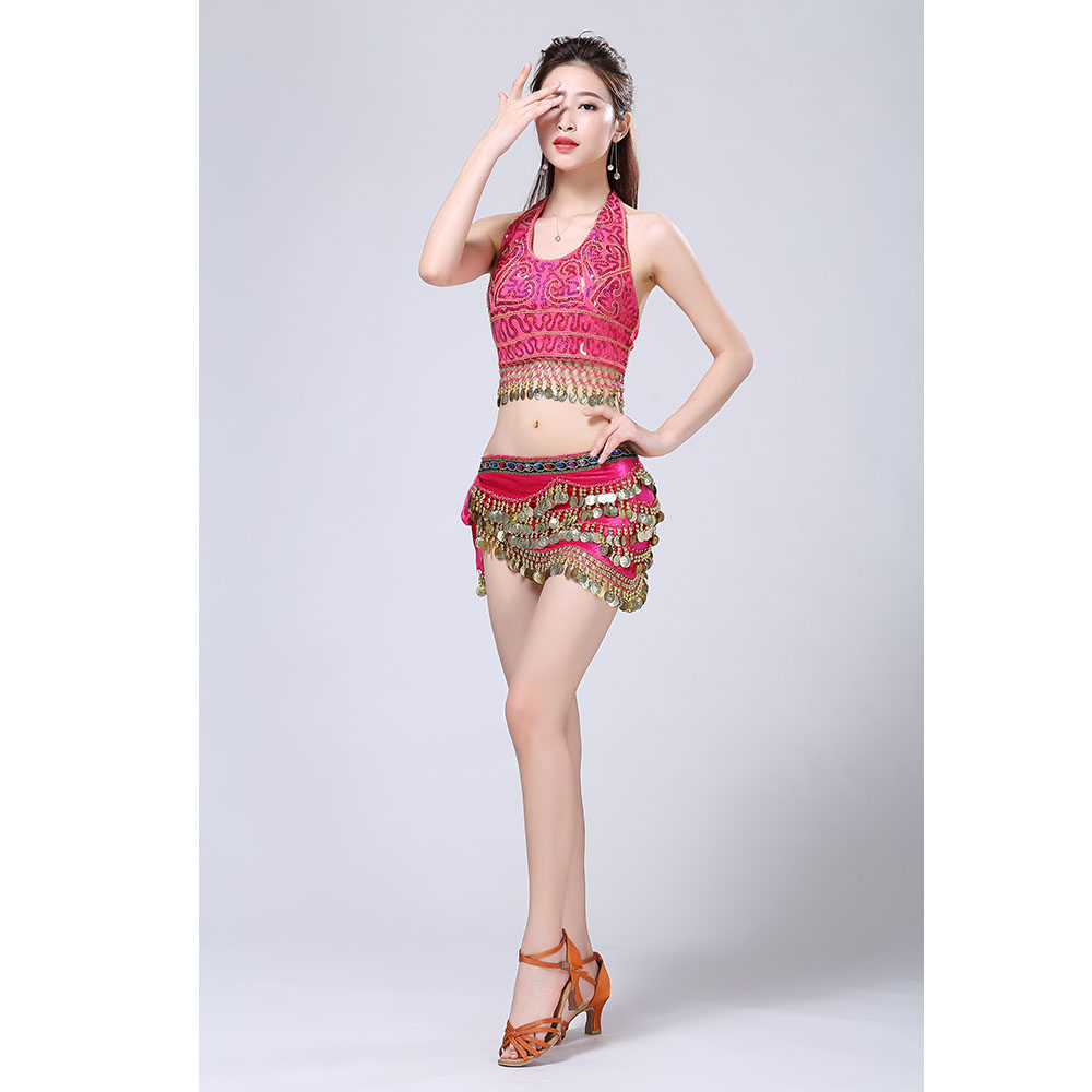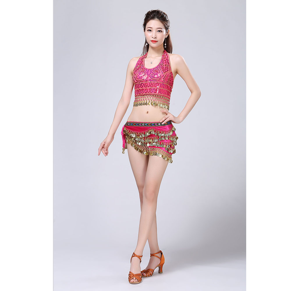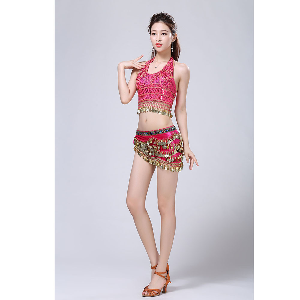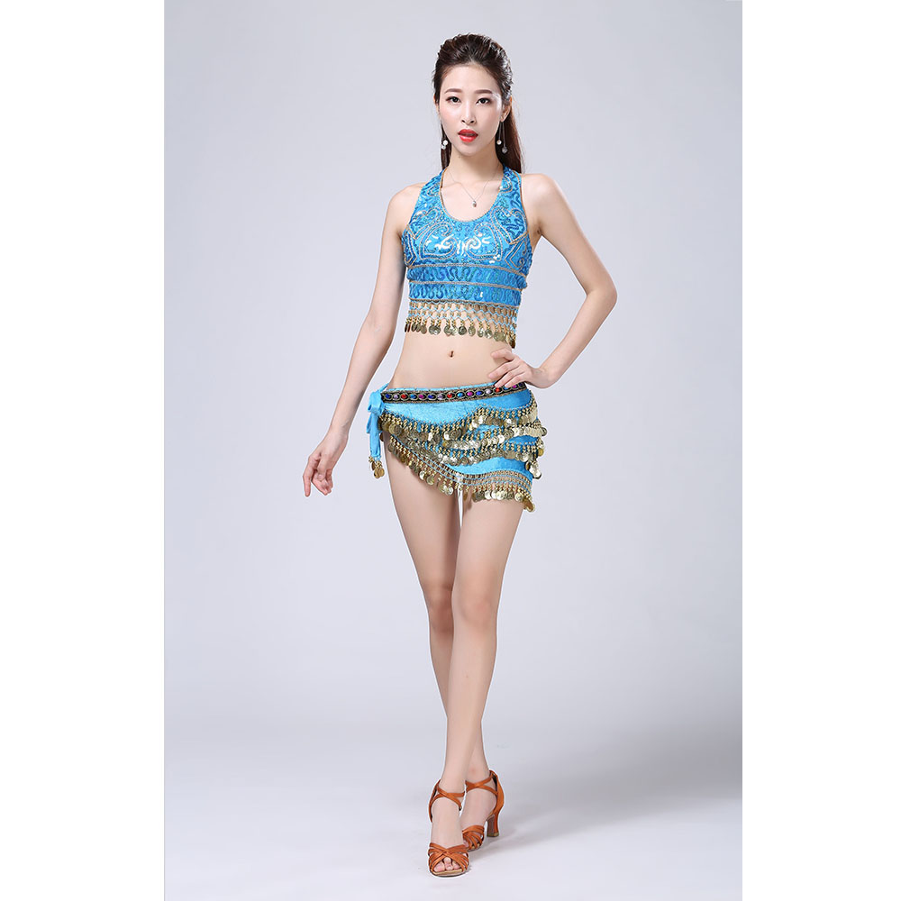 - Product Name: Stage Tie-up Halter Top and Skirt Belly Dance Rhinestone Sequins Sexy Tow Piece Costume D1815