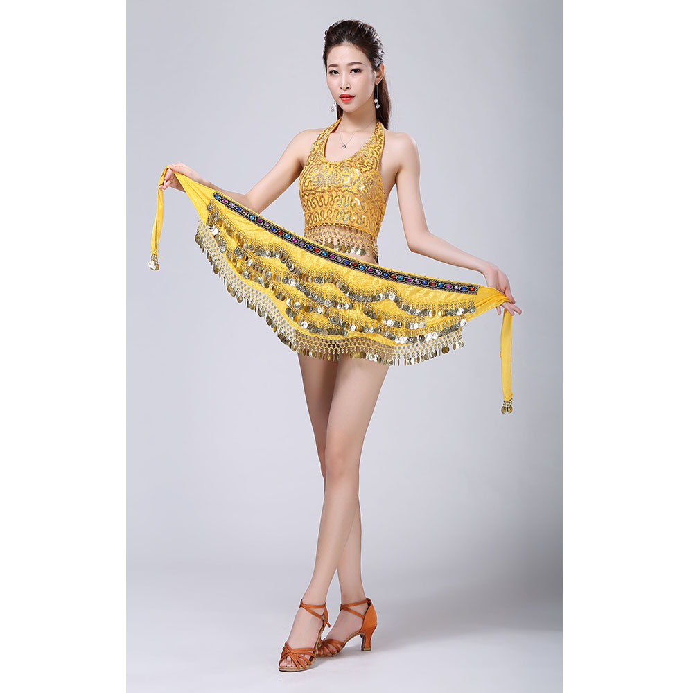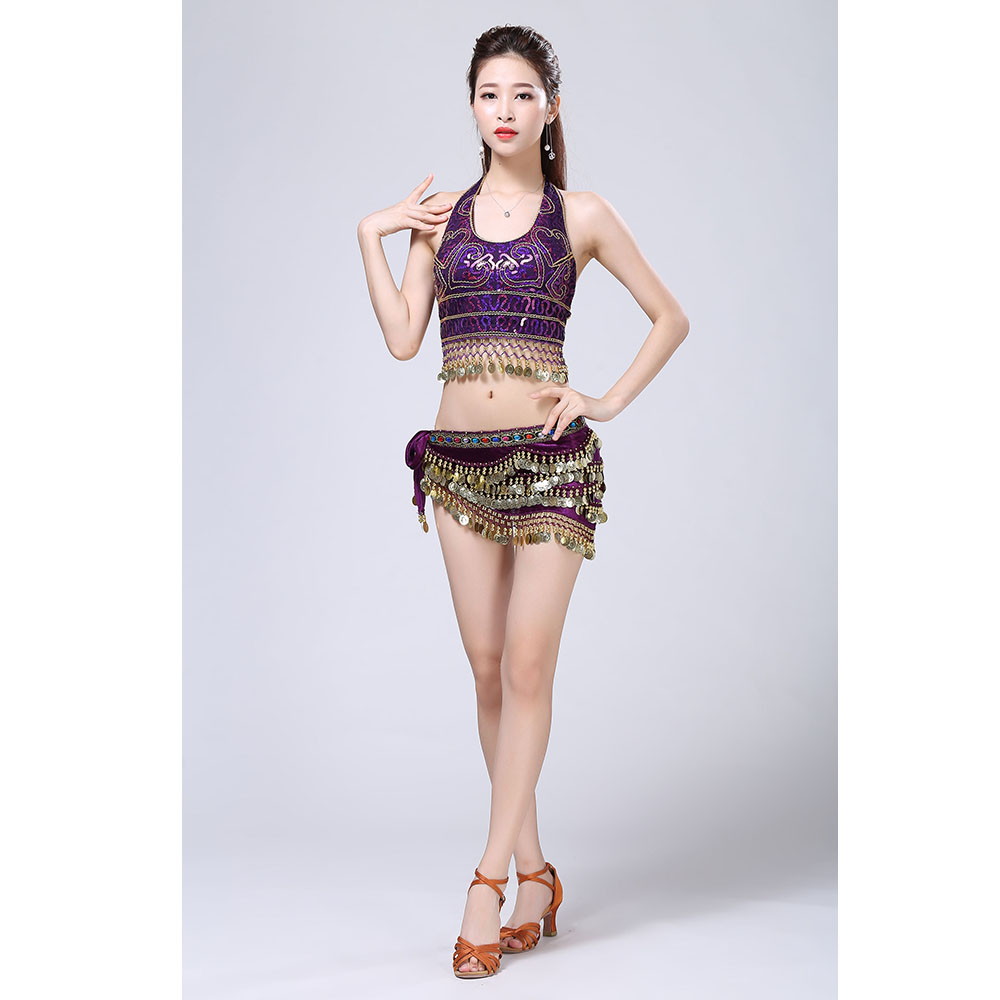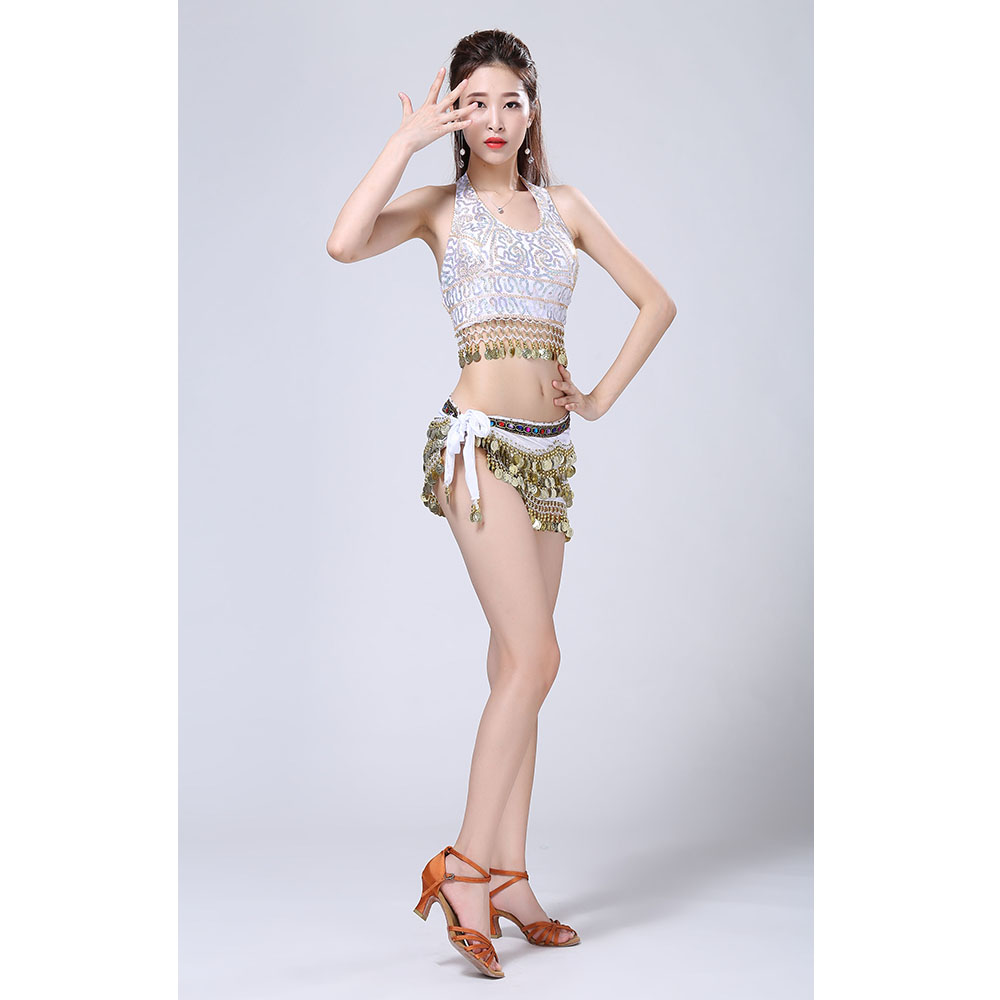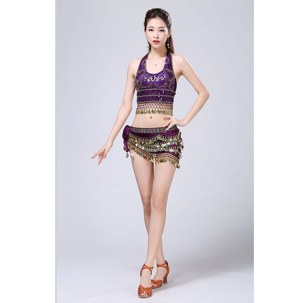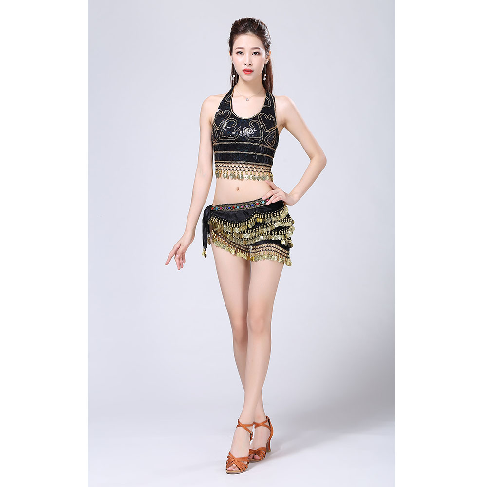 - Product Name: Stage Tie-up Halter Top and Skirt Belly Dance Rhinestone Sequins Sexy Tow Piece Costume D1815