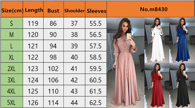 - Product Name: Summer Autumn Turn-Down Collar Button Long Sleeve Shirt Dress M8430