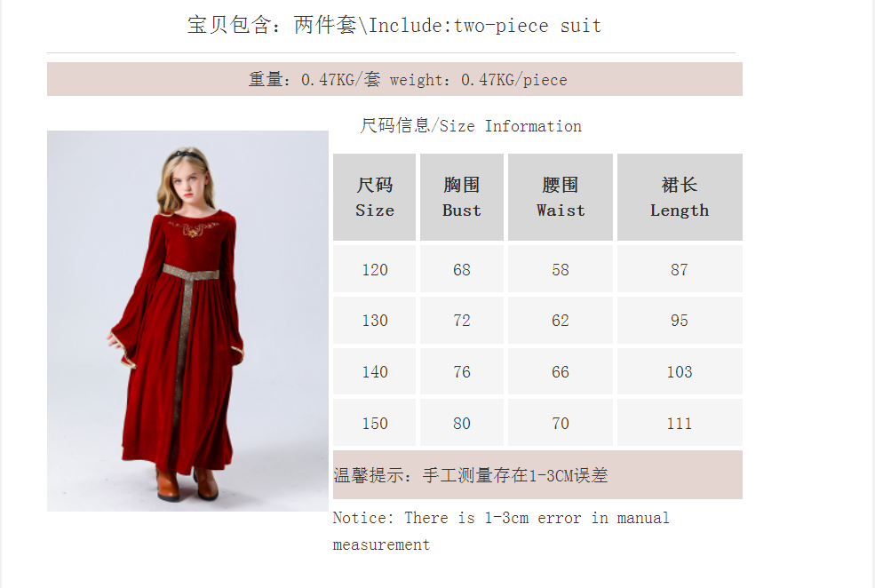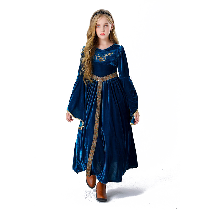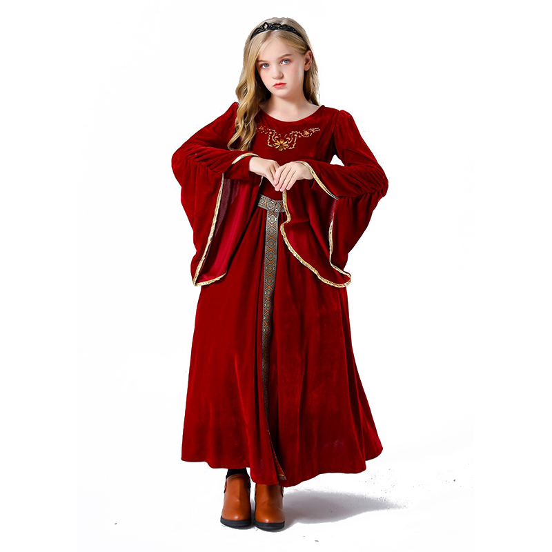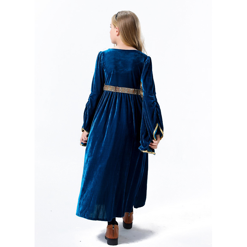 Home>Sexy Costumes>Children Costume>Vintage Court Aristocratic Ball Suede Trumpet Sleeve Girl Dress Drama Clothing YM5605