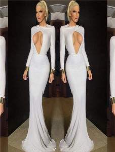 - Product Name: White long sleeve formal evening party maxi dress M30041