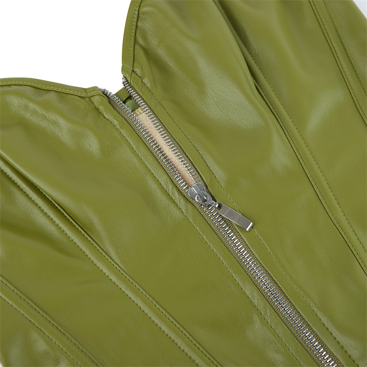 Women Faux Leather Corset Top Sexy Gothic Grass green Zipper Korset Bustier Vintage Burlesque Lingerie Party Club Corselet TG906