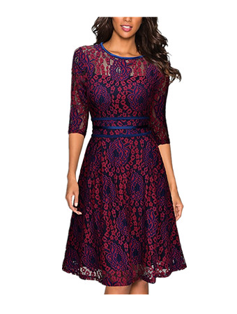 Women Lace Middle Sleeve Casual sexy Dress 2017 Party Dress