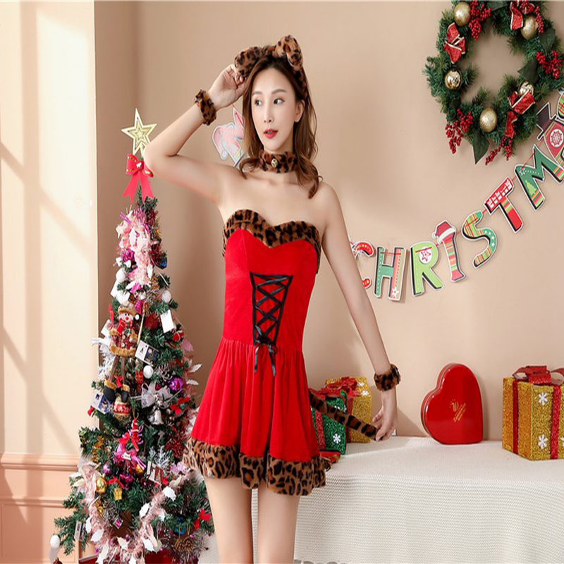 Home>Christmas Dress>Women Leopard Print With Tail Day Sexy Christmas Party Christmas Red Dress DL2020