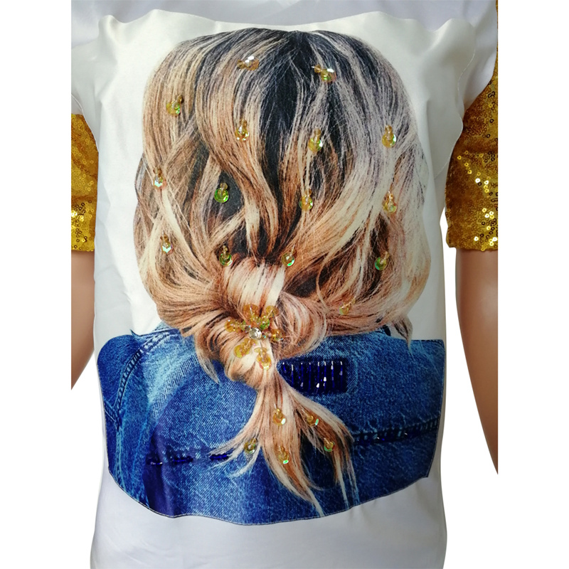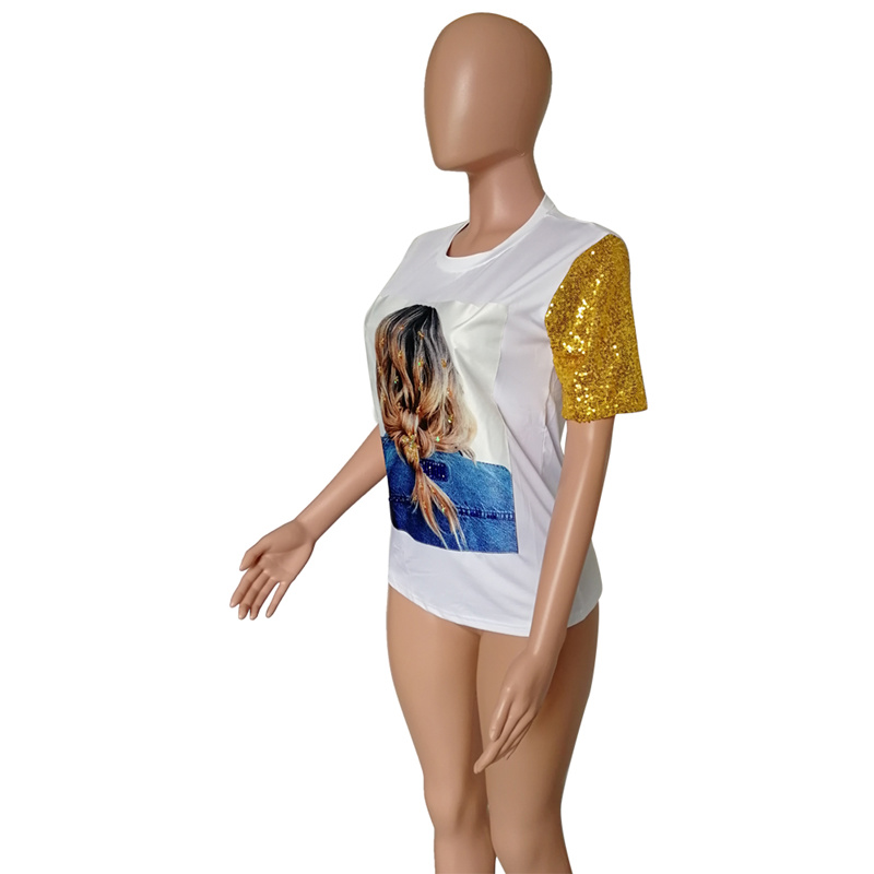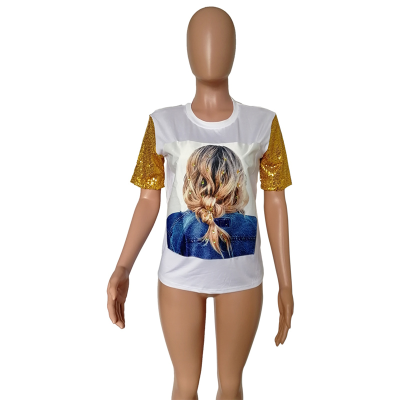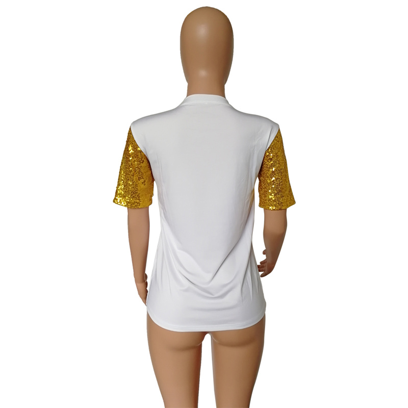 - Product Name: Women Tops Summer Short Sleeve Sequins T-Shirts M8443